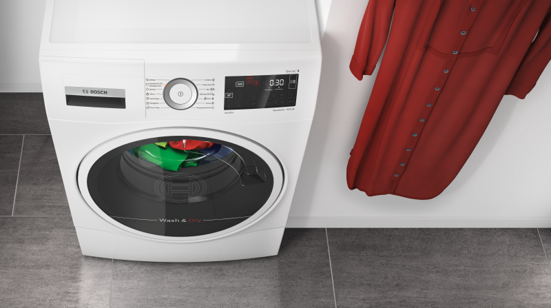 Mosson és szárítson egyszerre.Nincs hely a szárítónak? Semmi gond. A Bosch mosó- és szárítógépek Auto Dry funkcióval olyan hatékonyan szárítanak, mint amilyen hatékonyan mosnak. Az AutoDry automatikusan tudja, mikor tökéletesen szárazak a ruhái, mert folyamatosan ellenőrzi azok nedvességtartalmát a precíz és kíméletes szárítás érdekében. A minden textíliához igazított mosó és szárító programok mindig a legjobb eredményt nyújtják. A frissen mosott ruhát végre azonnal felveheti. Akár 6 kg-ig moshat és száríthat egyszerre. Spóroljon a vízzel és a mosószerrel.Érjen el maximális hatékonyságot a mosásnál az i-DOS automata adagolórendszerrel. Töltse fel egyszer a mosószer- és öblítőrekeszeket és az i-DOS szenzorok minden egyes mosáshoz kimérik a pontos mosószer- és vízadagot, mosásról mosásra. Így takarékoskodhat a mosószerrel és elkerülheti a szükségtelen öblítést.